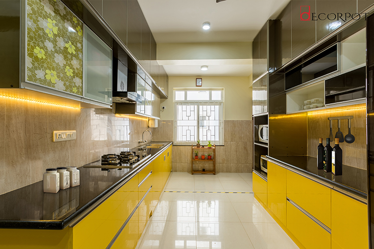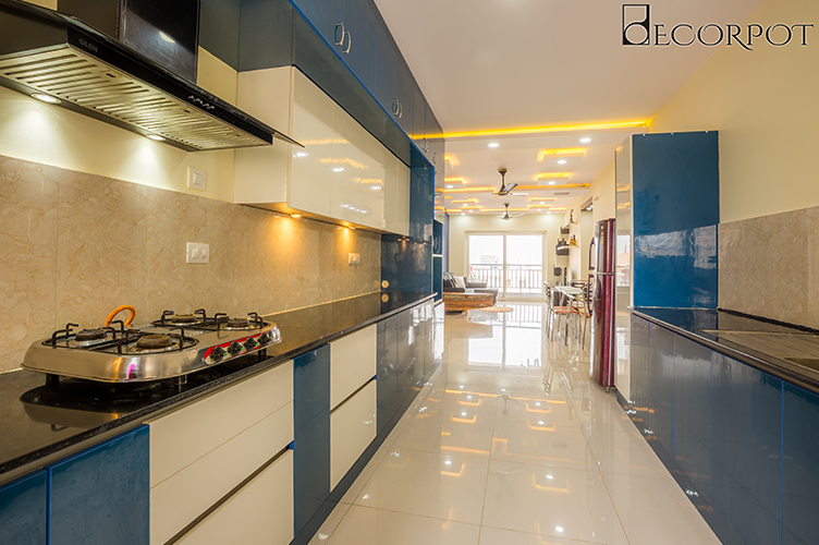 Segregation in a kitchen is a very important factor which makes kitchen chores much easy to be carried on. Parallel Kitchen design is one such type of a modular kitchen which demonstrates the utmost necessity of separateness of different working space inside your kitchen. Say for example, if you have a narrow kitchen area, then you would face a lot of trouble in doing the cooking work and washing work at the same end. A parallel kitchen allows you to keep all your kitchen appliances which needs dry and moisture free area on one side and separates the wash basin and other water involving works on the opposite end. It is an appropriate option for homes in Pune where you may have two different food cultures in the same house. It means that the vegetarian and non-vegetarian stuffs can be kept separated so that no one actually has any problem with the other. Parallel Kitchens are much like U-Shaped kitchen and is very comfortable to work in even when two or more people are present inside.